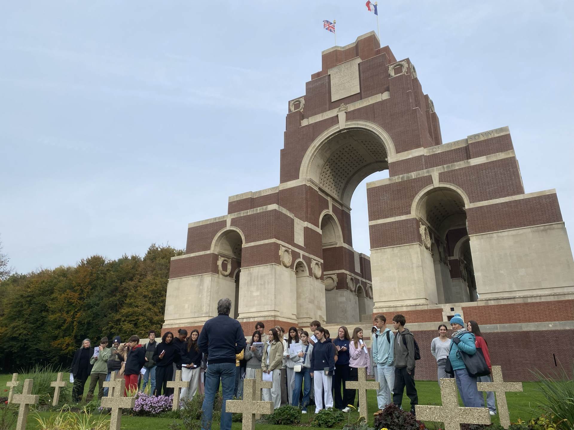 The photos show students visiting the Thiepval Memorial that commemorates the missing soldiers from the Battle of the Somme, and the Belgian town of Ypres central to the Flanders Fields area.